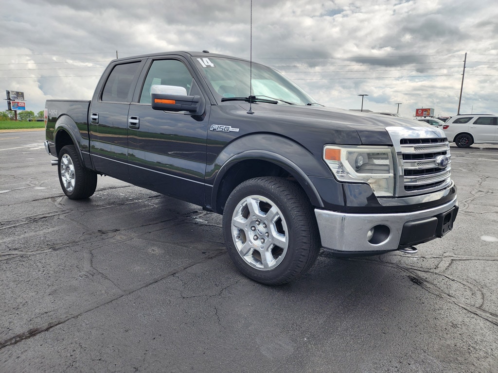 2014 Ford F-150 Lariat 4WD â" powerful, refined, and ready for work or weekend adventures in Watseka, IL. This Ford F-150 pairs a robust 5.0L V8 gasoline/E85 engine with four-wheel drive for confident towing, hauling, and off-road capability. Premium Lariat features include comfortable leather seats, a back-up camera, and rear parking sensors for easier maneuvering in tight spaces. The interior blends upscale amenities with durable materials, making it ideal for daily driving and heavy-duty tasks. This truck comes with a CARFAX Clean Report and is a CARFAX 1-Owner vehicle, offering added peace of mind about its history. The strong V8 delivers reliable performance and a satisfying driving experience, while four-wheel drive enhances control in adverse weather and rough terrain. Practical bed capacity and towing preparedness make this Ford F-150 a versatile choice for contractors, outdoor enthusiasts, and families needing extra capability. Located in Watseka, IL, this 2014 Ford F-150 Lariat is competitively priced â" we offer the best price to ensure exceptional value without sacrificing quality. Whether youâre comparing models or ready to take it for a test drive, this well-maintained Ford F-150 stands out for its combination of comfort, capability, and a clean vehicle history. Schedule a viewing or contact us for more details today.