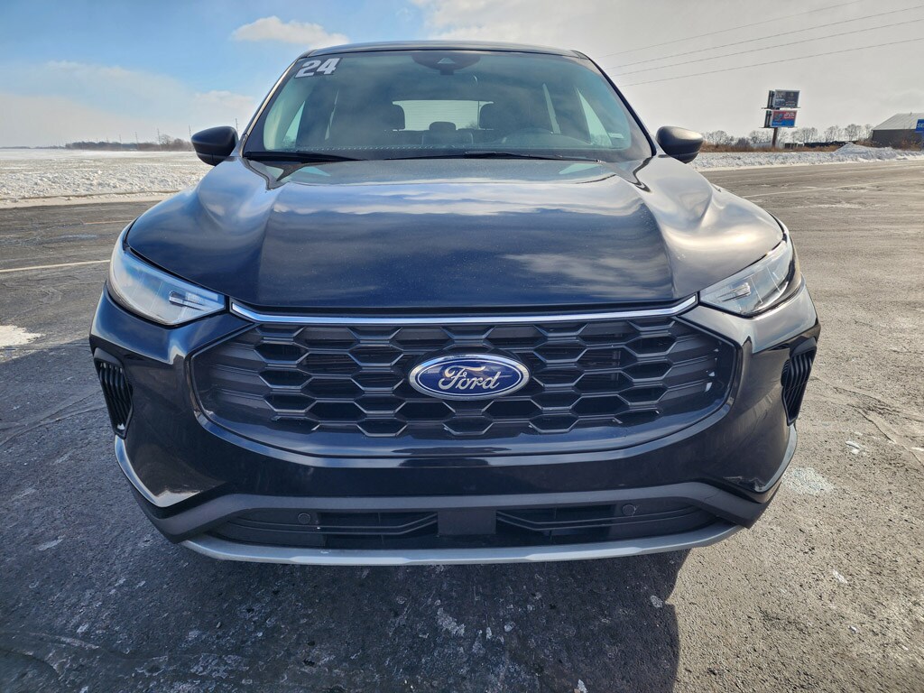 See what's behind you with the back up camera on the Ford Escape. It features a hands-free Bluetooth phone system. It has a clean CARFAX vehicle history report. Good News! This certified CARFAX 1-owner vehicle has only had one owner before you. The Ford Escape keeps you comfortable with Auto Climate. Never get into a cold vehicle again with the remote start feature on this mid-size suv. It has a 3 Cyl, 1.5L high output engine. Set the temperature exactly where you are most comfortable in the vehicle. The fan speed and temperature will automatically adjust to maintain your preferred zone climate. Load groceries and much more with ease into this 2024 Ford Escape thanks to the power liftgate. Front wheel drive on it gives you better traction and better fuel economy. This unit is painted with a sleek and sophisticated black color. Electronic Stability Control is one of many advanced safety features on this model.