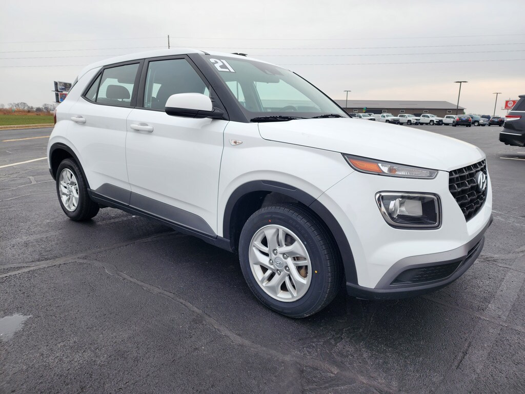 Discover unbeatable value with this 2021 Hyundai Venue SE, now available in Watseka, IL â" the best price on the market for a compact SUV that combines efficiency, tech, and safety. Powered by a fuel-efficient 4-cylinder 1.6L gasoline engine and smooth FWD performance, the Hyundai Venue SE delivers confident everyday driving and excellent fuel economy for city commutes and weekend getaways. Enjoy modern connectivity with Apple CarPlay and Android Auto, plus Hands-Free Bluetooth for seamless calls and streaming. The integrated Back-Up Camera enhances parking confidence, while Lane Keep Assist adds an extra layer of safety on busy roads. Thoughtful interior design provides comfortable seating and versatile cargo space, making this Hyundai Venue an ideal fit for singles, couples, or small families. This Hyundai Venue SE stands out for reliability, low operating costs, and a compact footprint that's perfect for navigating downtown streets. Routine maintenance and a clean history ensure peace of mind, and detailed service records are available upon request. Located in Watseka, IL, this vehicle is priced to sell quickly â" don't miss the best-priced deal in the area. Schedule a test drive today and experience the smart balance of technology, safety, and efficiency packed into this 2021 Hyundai Venue SE. Competitive pricing and local availability make this an exceptional opportunity to own a dependable compact SUV.