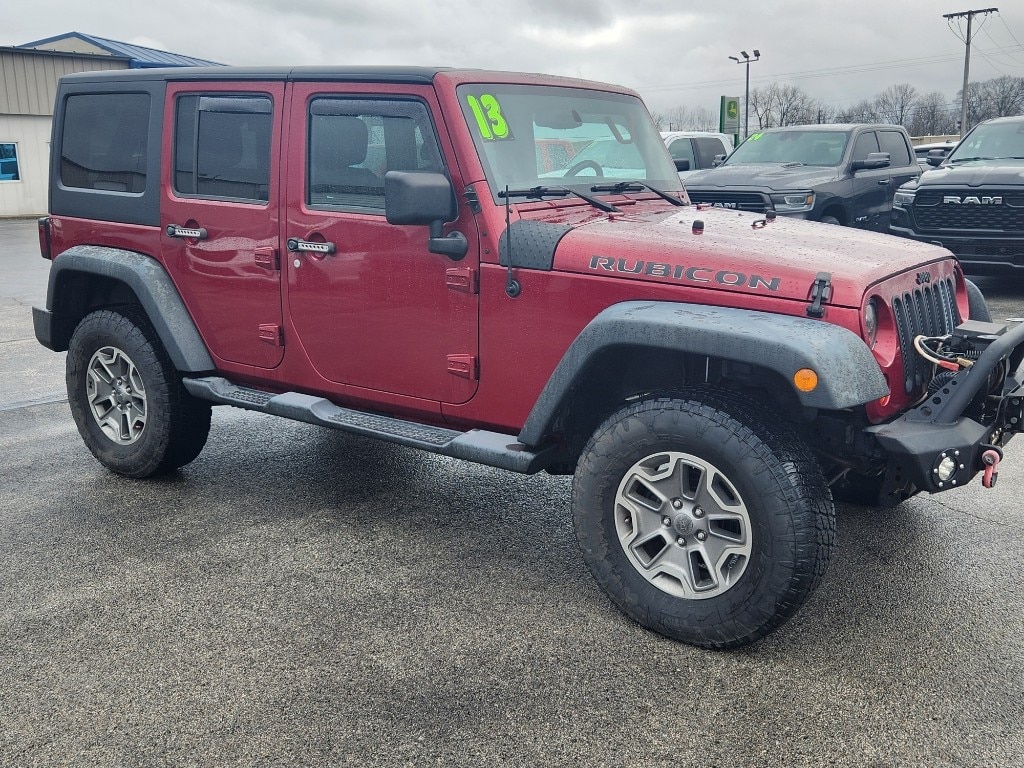 Experience adventure-ready capability with this 2013 Jeep Wrangler Rubicon 4WD, now available in Monticello, IN â" priced to sell at the best price in the area. Powered by a rugged V6 3.6L gasoline engine and rock-solid 4-wheel drive, this Jeep Wrangler Rubicon delivers legendary off-road performance and confident on-road driving. Clean CARFAX report ensures peace of mind, documenting a well-maintained history. Equipped for modern convenience and comfort, features include Hands Free Bluetooth for safe, connected calling and streaming, Navigation to guide your next trail or road trip, and Remote Start for quick cabin comfort on chilly mornings. Automatic Climate Control keeps the interior comfortable no matter the weather. The iconic Rubicon trim adds heavy-duty off-road hardware and specialized suspension that let you conquer trails, mud, and rocks with ease. This Jeep Wrangler blends classic rugged styling with practical technology and an ownership history you can trust. Whether you're searching for a dependable daily driver with standout capability or a weekend warrior ready for exploration, this 2013 Jeep Wrangler Rubicon checks every box. Located in Monticello, IN, and offered at the best price, this opportunity won't last long. Contact us today to schedule a test drive and see why this Jeep Wrangler Rubicon is the ideal choice for drivers who demand power, style, and value.
