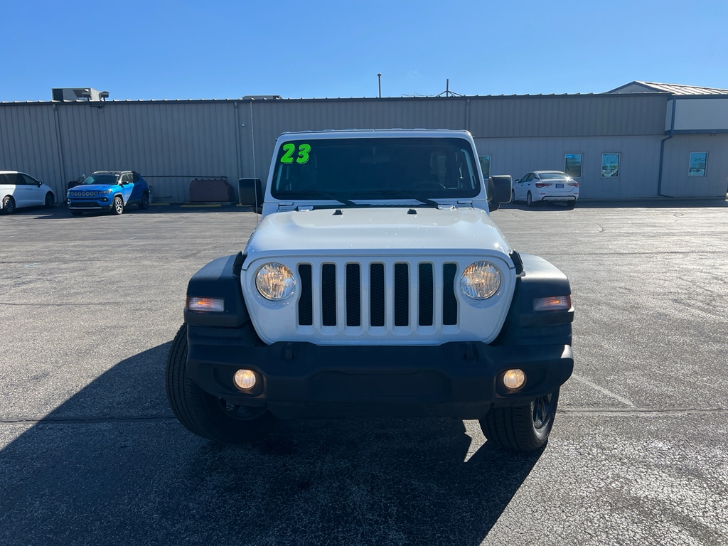 Experience rugged capability and modern convenience with this 2023 Jeep Wrangler Sport, now available in Monticello, IN. Powered by a responsive 4-cylinder 2.0L gasoline engine and equipped with 4WD, this Jeep Wrangler delivers confident performance on pavement and off the beaten path. The Off-Road Package enhances trail readiness with upgraded suspension and protective components designed for adventurous driving. Inside, the cabin balances durable materials with tech-forward features for everyday comfort. Stay connected with Hands-Free Bluetooth and enjoy your favorite channels through XM Radio. A Back-Up Camera adds safety and ease when navigating tight parking spaces or reversing on uneven terrain. This vehicle also comes with a CARFAX 1-Owner history, giving extra assurance about its maintenance and care. This Jeep Wrangler Sport offers a blend of capability, technology, and value â" and it's priced competitively to be the best deal in Monticello. Whether you're commuting or exploring local trails, the compact 2.0L turbocharged engine provides efficient power and responsive handling. With 4WD and the Off-Road Package, you'll be ready for weekend adventures or daily tasks. Schedule a test drive today in Monticello, IN, and see why this 2023 Jeep Wrangler Sport stands out as the best-priced, well-equipped choice for drivers seeking rugged versatility and modern features.